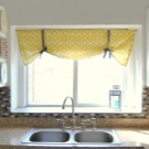 Ламбрекинът не трябва да бъде тромав и претенциозен. На малък кухненски прозорец плътна монохроматична тъкан от римски завеси и лека, сгъната органза с шарка от листа перфектно ще се “разбира”.