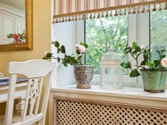За кухненски прозорци в стил Прованс използвайте памук или смесен плат. Лентите, които действат като повдигащ механизъм, изглеждат много органично.