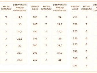 Първоначално е необходимо да се измери отвора на прозореца и да се добавят към надбавките: странични части по 5 см всяка, по 10 см всяка в горната и долната част. Тъканта може да се свие след пране. Ето защо преди да продължите с рязането, трябва да се накисне в топла вода, да се изсуши и да се изглади с ютия. След това, използвайки таблицата, определяме броя на гънките на бъдещата завеса. Ние ги маркираме, както и местоположението на пръстените, с пунктирана линия от шевовата страна на тъканта.