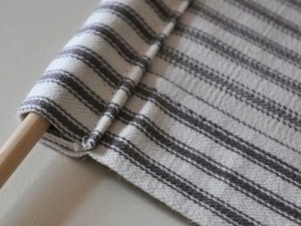 От шевната страна е зашита довършителна граница, образуваща връзки, в които се вкарват пластмасови пръти. В този случай единият ръб на такива джобове е зашит, а другият не. Това се прави, така че пръчките винаги могат да бъдат извадени преди измиване на римската сянка. В този случай пластмасата е идеалният материал. Такива пръти няма да се хванат за тъканта и няма да развалят външния вид на продукта..