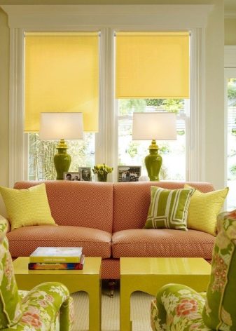 Ролетни щори са най -подходящи за селски къщи, големи прозорци. Текстурата на такива завеси изглежда по -хармонично с природата и дървото. В малък апартамент ролетни щори приличат на офис, а самата стая става по -малка поради липсата на светлина.