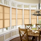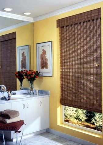 Ролетни щори са най -подходящи за селски къщи, големи прозорци. Текстурата на такива завеси изглежда по -хармонично с природата и дървото. В малък апартамент ролетни щори приличат на офис, а самата стая става по -малка поради липсата на светлина.