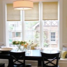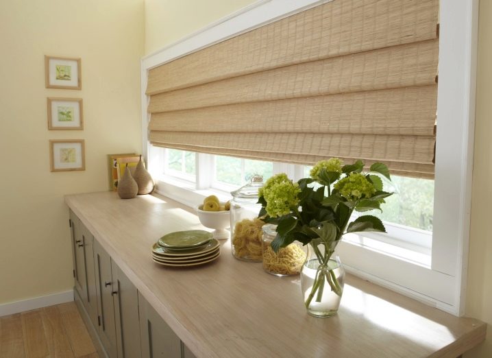 Разбира се, кухненският прозорец ще изглежда красиво със завеси, изработени от естествени материали. Това може да бъде бамбук, слама и др. Те имат красива текстура, която ще добави уют и единство с природата към целия интериор. Трябва да се отбележи, че такива завеси не винаги имат обичайния естествен цвят. Можете да намерите различни цветове. Такива ролетни щори са над средната цена, но са доста ефективни и практични..