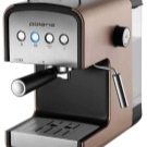 - Polaris “PCM 1516E”. Стилното устройство е изработено от пластмаса, което не се харесва на много потребители. Уредът приготвя ароматно и приятно кафе, налягане – 15 бара. За да получите висококачествена напитка, трябва да уплътните добре смлените зърна във филтъра. Дизайнът е оборудван с 1,2 -литров резервоар за вода и метален клаксон с няколко дюзи. Сред недостатъците може да се отбележи липсата на функция за самопочистване и затоплящи чаши.