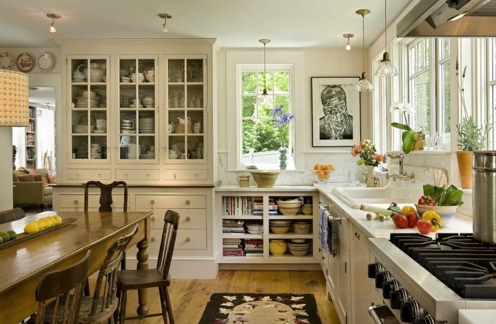 Бюфетът често има много отворени рафтове. Те могат да бъдат украсени с ваза с цветя, плодова чиния, рисувани чинии, издълбани фигурки, снимки в рамка или изящни сувенири. Тези сладки малки неща ще направят вашата кухня уютна..