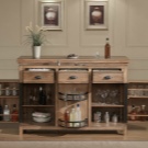 Случва се витрината отгоре да е напълно отворена. Или долната част също няма врати. Подходящ е за големи кани, чинии, чинии. Освен това бюфетът може да има и работна повърхност, върху която домакинята ще приготвя храна..