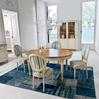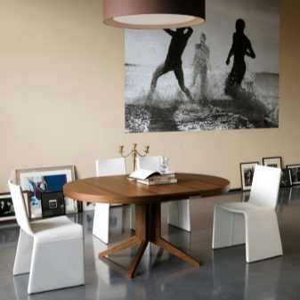 Това решение се препоръчва от много опитни дизайнери. Имайте предвид, че разстоянието между масата и другите мебели трябва да бъде най -малко 1 метър. В противен случай ще бъде много тесно и неудобно да седнете зад него. Много популярна е “трансформиращата се маса”, която може лесно да се сгъне в много компактна форма и не пречи на домакинята да се движи из стаята. Зад някои от тях, в разгънатия вариант, могат да бъдат настанени 10-12 души. Така че, ако къщата ви е често посещавана от гости, това може да бъде много ценно придобиване..