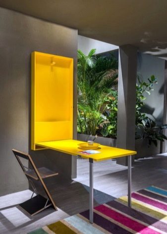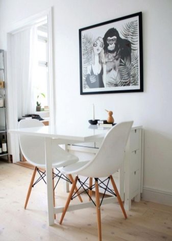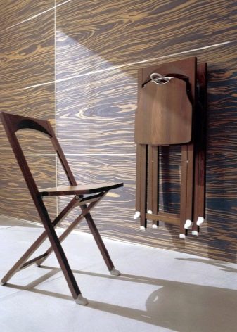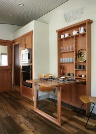 - Сгъваема маса, прикрепена към специална основа на стената. Подобна структура често може да се види във влака и сега тя може да мигрира в кухнята с голям успех;