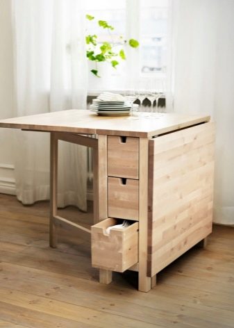 Не е изненадващо, че сгъваемите мебели са много популярни. Тя ви позволява лесно да решите този проблем, а съвременните производители са в състояние да предложат огромно разнообразие от дизайнерски решения. Ако говорим за кухнята, тогава един от ключовите елементи на обзавеждането в нея е масата, която може да бъде маса за хранене, или в същото време да служи като работно място..