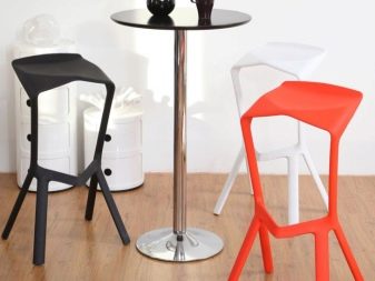 В условията на липса на място е по -добре да изберете столове, които приличат на табуретка, тъй като изглеждат доста компактни.