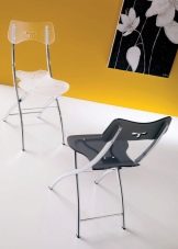 Сгъваемите мебели могат не само да вършат отлична работа със своите функции, но и да имат доста интересен дизайн. Сгъваемите столове са истински спасител, когато няма достатъчно място. Те могат да бъдат разгънати, когато е необходимо, и премахнати, когато вече не са необходими. Някои варианти се сгъват по такъв начин, че сгънатата им ширина е само няколко сантиметра..