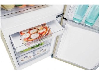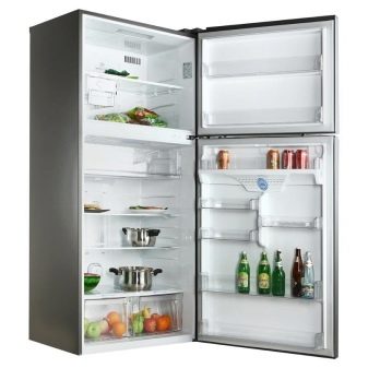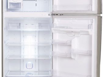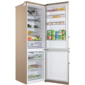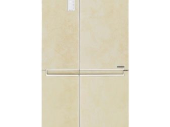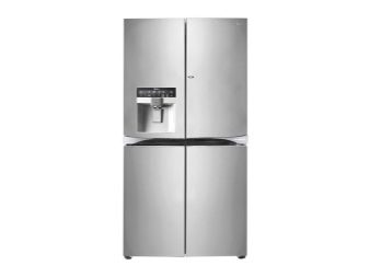 - LG GM-J916NSHV. Хладилникът е оборудван с 3 отделни камери. Фризерът се намира в долната част и поема 200 литра (до 12 кг / ден). Обемът на останалите отделения е 371 литра. Дизайнът се характеризира с такива размери – 180 * 91 * 76 (h * w * d). Функционалността е представена от автоматично размразяване, индикатор за затваряне на вратата, дозатор, минибар и антибактериална защита.