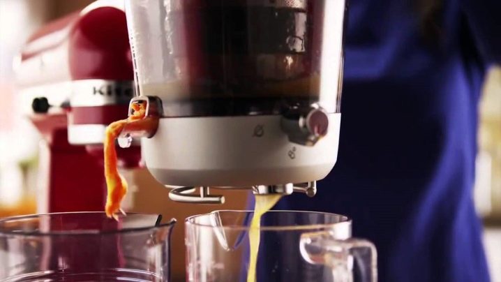 Сокоизстисквачките KitchenAid са също толкова популярни, но идват с по -висока цена. Винтовото устройство на тази марка в няколко стъпки ви позволява да изстискате много повече течност от плодовете, отколкото устройствата с центрофуга. Изстискването в този дизайн се извършва на два етапа: първо плодовете се натрошават със стоманен нож, а след това с помощта на шнек се изцежда сокът от натрошените плодове и зеленчуци, скоростта на въртенето му е осемдесет оборота за минута..