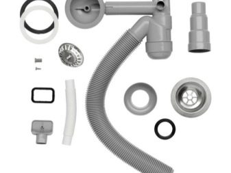 За кухненската мивка е необходимо да изберете дренажна система с голяма шийка, тъй като отворът на мивката обикновено се увеличава, освен това разстоянието от сифона до канализационната тръба обикновено също се увеличава, така че гофрирането също трябва бъде малко по -дълго.