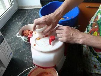 Ако работите с домати, тогава на всеки 30 кг е необходимо да спрете машината и да източите пулпата от палета, така че да не попадне в електродвигателя..