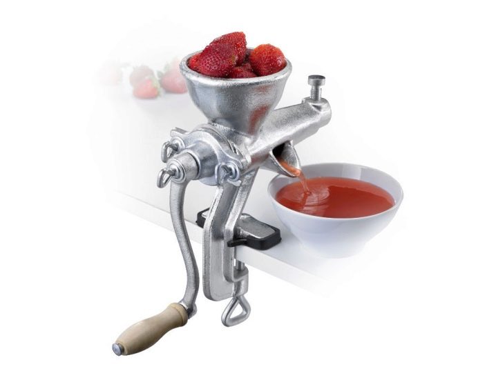 относноВижте ръчна сокоизстисквачка»В интернет има положителни отзиви. Хората обичат факта, че сокоизстисквачката работи без електричество, всички части са изработени от висококачествена неръждаема стомана. Такава единица ви позволява да получите не само сок, но и пюре, както и сок с каша. Купувачите оценяват стабилността му върху повърхности, които осигуряват гумените накрайници.