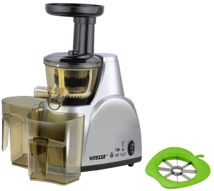 “Vitesse VS-553„Това е сокоизстисквачка за комфорт и ценители на качеството. Производителят предлага полезно и удобно оборудване за изцеждане на сокове. Хората, които са закупили този уред, отбелязват неговата висока производителност и ефективност. С помощта на такава сокоизстисквачка можете да получите гроздов сок за вино, сухо пресоване, получаване на 90% сок.