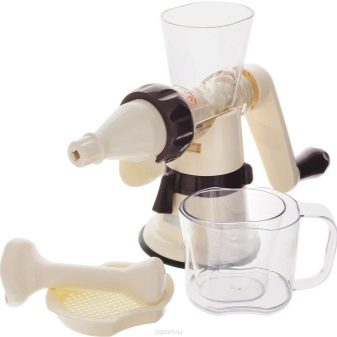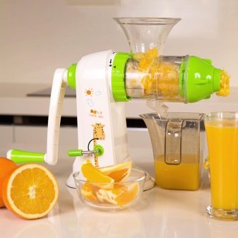 Електрическите агрегати се захранват от двигател. Шнекът, докато се върти, смила плодовете и плодовете до пюре, а след това изстисква сока от него. Механичните устройства работят благодарение на специален лост, който задвижва пресата.