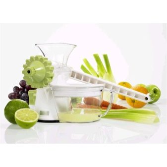 Ръчните сокоизстисквачки са подобни на месомелачка. Зърната се поставят в специална купа, в която сокът се изцежда поради винта. Активирането му се извършва в ръчен режим. След това сладкишът се отделя от течността, която се насочва през решетката и се излива в чаша.