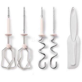 - Четири приставки: за тесто, бъркалка, шпатула, сладкар;