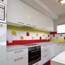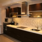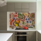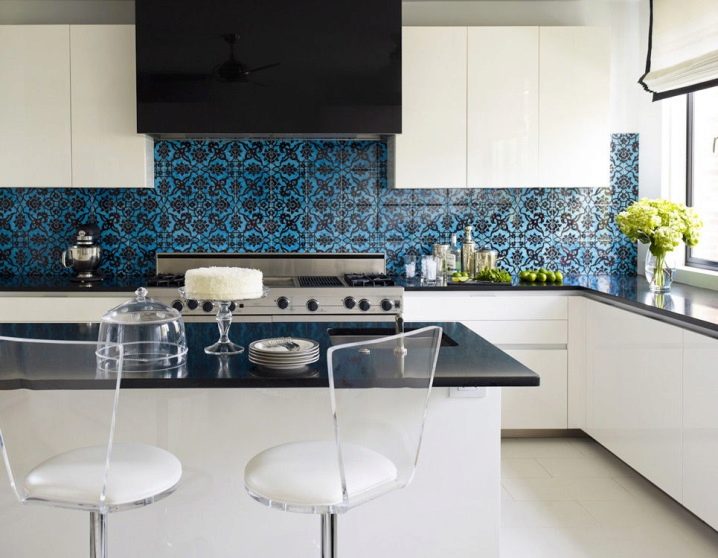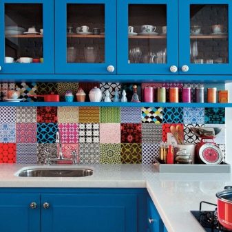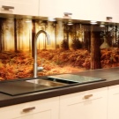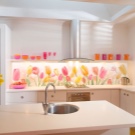 Ако всичко е ясно с височината на престилката, основният въпрос възниква поради ширината – това зависи от височината на навеса, наличието на онези елементи, които могат да бъдат изхвърлени от общия сценарий (отделно, нестроено оборудване , качулка, шкафове или моливи с различна височина, свободно пространство над работната повърхност). Частта от стената, която ще бъде зад шкафове или уреди в пълен размер (високи хладилници, фризери и т.н.), обикновено не е украсена с платно. Такъв декор би бил твърде скъп и нефункционален..