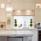 Височината на таваните в кухнята също влияе върху поставянето на стенни шкафове. Тук можете да се съсредоточите върху положението на тръбите (ако преминават по стените) и вентилационния отвор. В кухня с висок таван можете да “бродите”, като използвате максималните параметри. Тогава усещането за теснота няма да бъде дори в малка кухня, а работните повърхности ще бъдат функционални, няма да се превърнат в просто рафтове за „всичко останало“. Моля, обърнете внимание, че дизайнерите не препоръчват поставянето на шкафове и рафтове над 2,1 м.