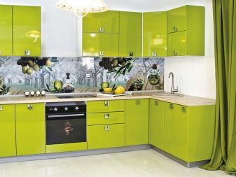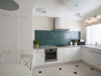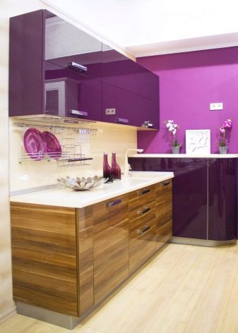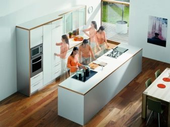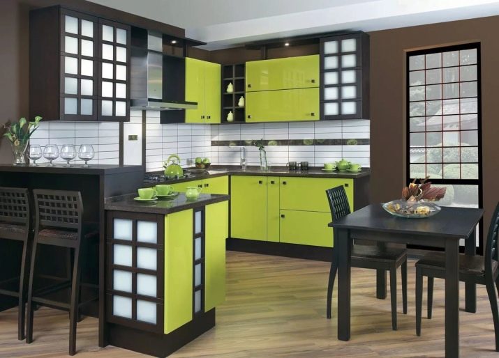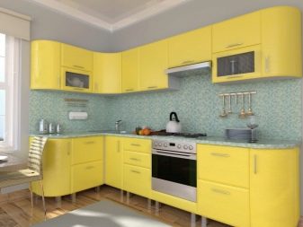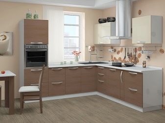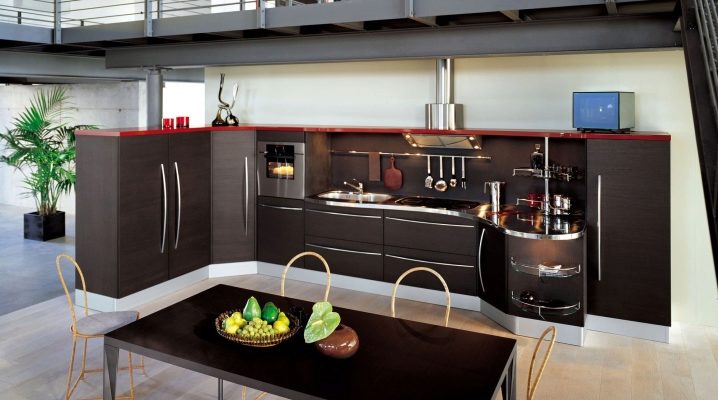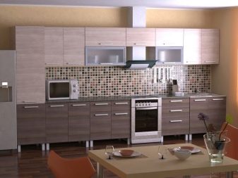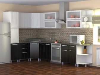 Декорирайки кухнята с мебели, не можете да ограничите въображението си. В съвременното общество правилата и разпоредбите за инсталиране на слушалки отдавна са изчезнали, така че можете успешно да разнообразите интериора с помощта на нестандартно подреждане на долни и горни шкафове. Например, ако монтирате горните шкафове не в една равнина, а на няколко нива, можете да подчертаете модерността на кухнята, да направите нейния интериор уникален и необичаен.