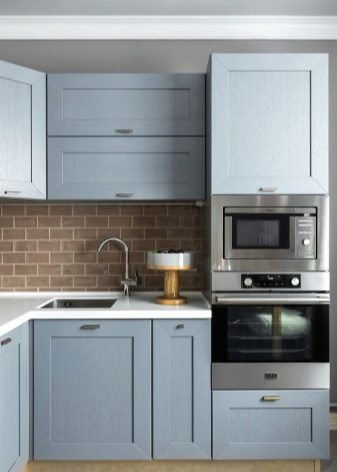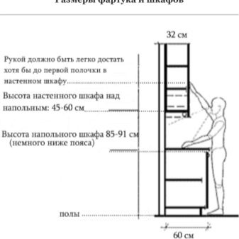 Въпреки че височината на долните пиедестали задава тона за всички кухненски дизайнерски работи, не трябва да се ограничавате до този критерий при избора на подходящите слушалки. Необходимо е да се вземе предвид размерът на стенните шкафове, особено ако мебелите са избрани за малка кухня.