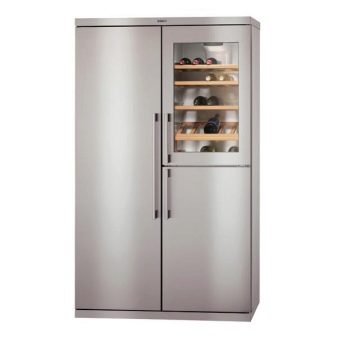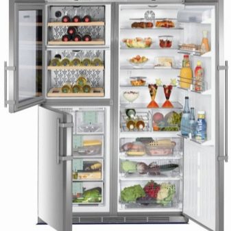 Линия за хладилни шкафове Един до друг често оборудвани с ледогенератори, специални отделения за съхранение и охлаждане на вина, вградени механизми за приготвяне на коктейли. Някои модели могат да бъдат свързани към най -новата система „интелигентен дом“ и да се управляват дистанционно. Освен това, въпреки впечатляващите си размери, такива устройства консумират електроенергия много умерено..