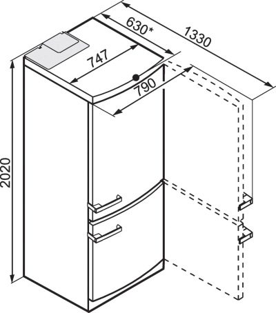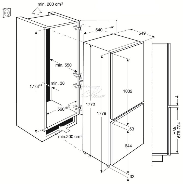 - Европейски тип (тесни единици над 1,8 метра). Хладилното отделение обикновено се монтира над фризера..