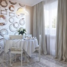 Декориране с необичайни стенни плочи. Те могат да бъдат прикрепени към стената с помощта на специални държачи. Редът на поставянето им може да бъде хаотичен, но се уверете, че дори в хаоса има ред, така че крайната композиция да изглежда хармонично и да не противоречи на други елементи на декора;