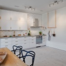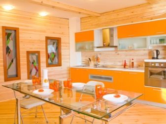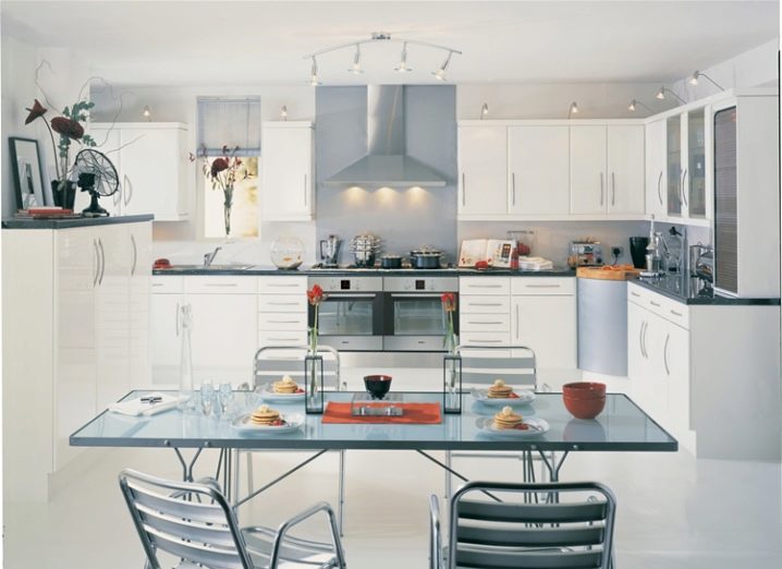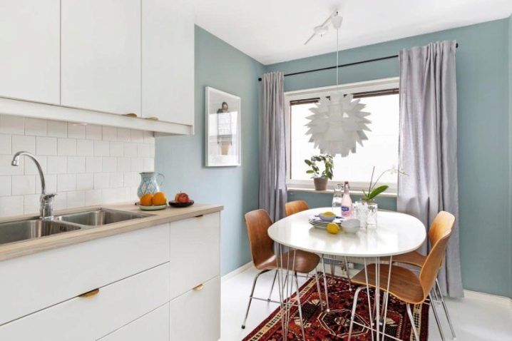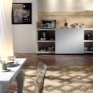 - На първо място, в тази стая не красотата и дизайнът са важни, а удобството при поставянето на мебели и домакински уреди, комфортът при хранене и готвене. Важно е внимателно да планирате подреждането на всички интериорни елементи, за да избегнете ненужно претрупване на пространството и да не оставите нефункционални празни пространства;