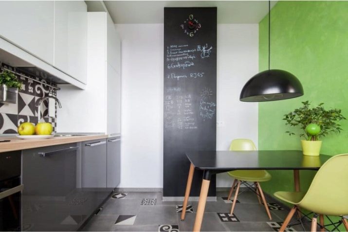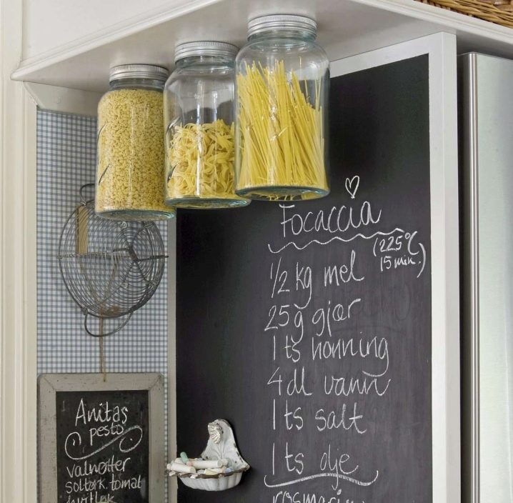 Шифер. Много популярен детайл от кухненския интериор на Запад. Наистина е удобно да запишете рецепти, график за хранене, ценни инструкции за членовете на семейството или просто да нарисувате смешни снимки върху него. Само не забравяйте да вземете качествена креда, в противен случай целият под под дъската ще бъде осеян с креда. Между другото, алтернатива може да бъде бяла дъска, която няма такъв недостатък;