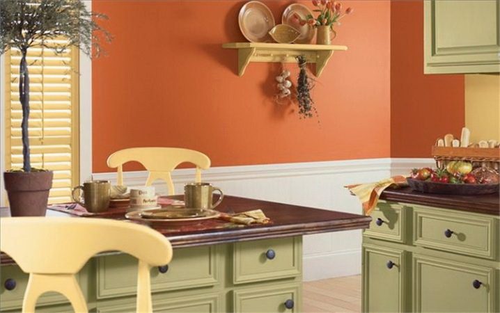 Оранжево. Много “вкусен” цвят, който ви кара да ядете. Често се използва за декориране на заведения за бързо хранене. Препоръчително е също да се разрежда с по -успокояващи цветове, например, различни нюанси на кафяво, сиво;