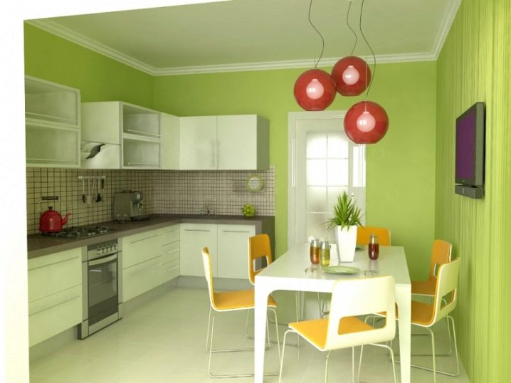 Зелени нюанси подходящ за хора, които обичат здравословното хранене. Поради факта, че в природата има много естествена зеленина, този цвят се свързва с нещо полезно и вкусно. Просто трябва да обърнете внимание на тона, който ще използвате за декорация – твърде тъмният, мръсен нюанс на зелено може да обезкуражи дори апетита на гладен човек, но светлият, напротив, ще ви помогне да гладувате и да се насладите храна;
