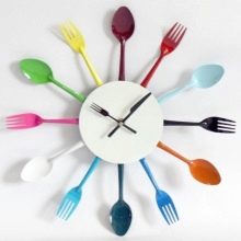 Ярък стенен часовник. Сега има много от тях, с всякакви форми и цветове; много в чисто кухненска тема (например с изображение на чаша кафе или бъркани яйца, под формата на елемент от ястия или с щампа в стил “Прованс” – лавандула, преплитащи се листа или няколко птици).