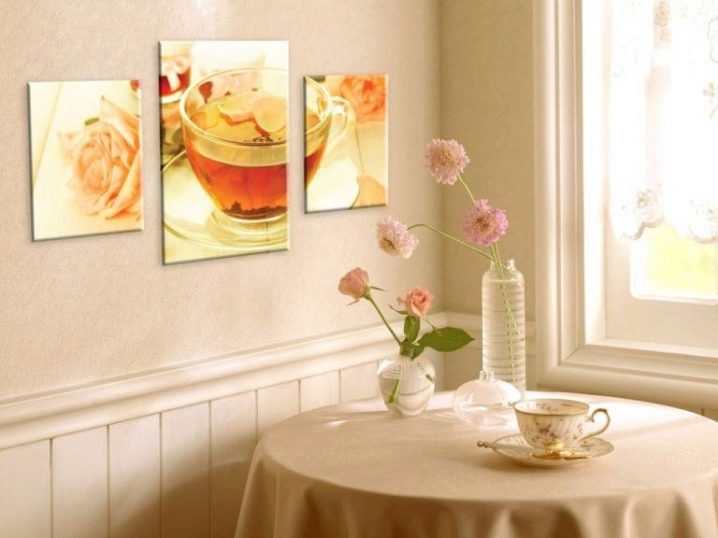 Картини. В зависимост от цялостния стил на вашата кухня, можете да изберете почти всяко изображение – от натюрморт до абстракция. Вместо картини, можете да украсите стените с подбор на семейни снимки;