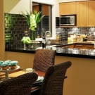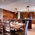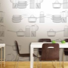 Декорация на стени с тапети. Ако наистина не искате да се притеснявате и вашият вариант е просто да залепите стените с тапети, обърнете внимание на следната идея – изберете тапет за стената в зоната за хранене, който е в хармония с останалата част от кухненските стени, но все пак различни по модел, текстура, сянка. По такъв прост начин можете да създадете визуално зониране на стаята и в същото време да не създавате ненужна работа за себе си;