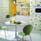 Стикери и стенописи. Ако стените на кухнята ви са боядисани в същия цвят или покрити с обикновен тапет, виниловите стикери за стени ще ви помогнат да разредите интериора. Те са устойчиви на слънчева светлина и влага и могат да се сменят от време на време, без да се повреди основният слой. Можете дори да направите такъв стикер със собствените си ръце! За да направите това, купете самозалепващ се филм с желания нюанс и изрежете формата според предварително направен шаблон.