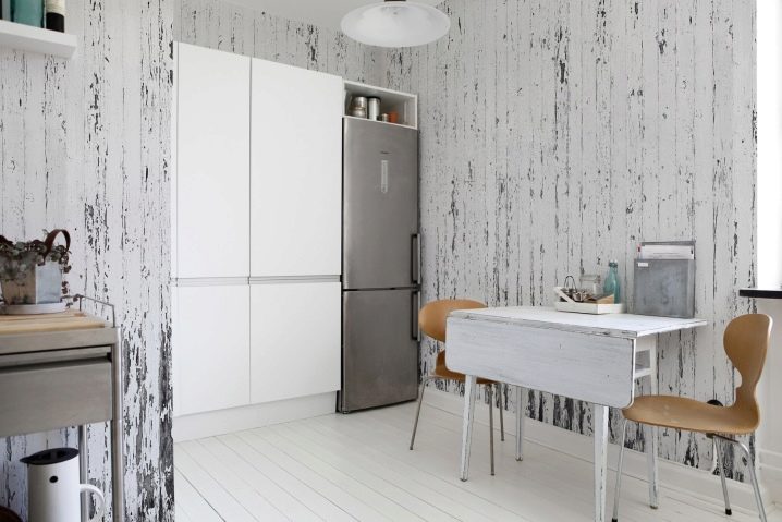 В частна къща е по -добре да използвате естествени и текстурирани материали. Те включват дърво, камък, облицовка. В малка кухня е подходящо да се използва мозайка за декориране на работната зона или пластмасов тапет, който може да се мие. Ако изберете правилния цвят и модел, както и производителя, такъв тапет ще издържи най -малко десет години.