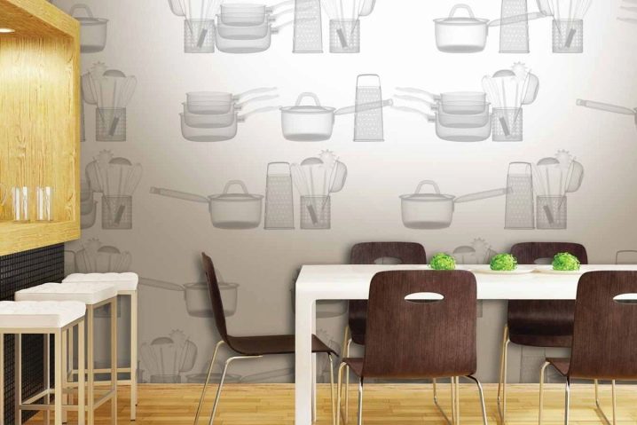 Тапет. Класическата версия на декорация на стени. Обикновените тапети няма да работят в кухнята, затова е по-добре да използвате следните видове за обработка: течни, стъклени тапети, винилови, нетъкани.