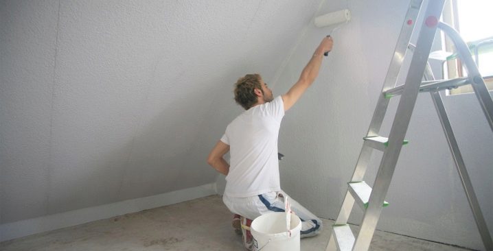 Оцветител. Боята за довършителни работи се различава от обичайното покритие по състав, цвят, стабилност. При избора се ръководи от критериите. Изберете акрилна боя. Изсъхва бързо, измива се добре, създава защитен филм на стената. Довършителна боя, устойчива на пара и влага.