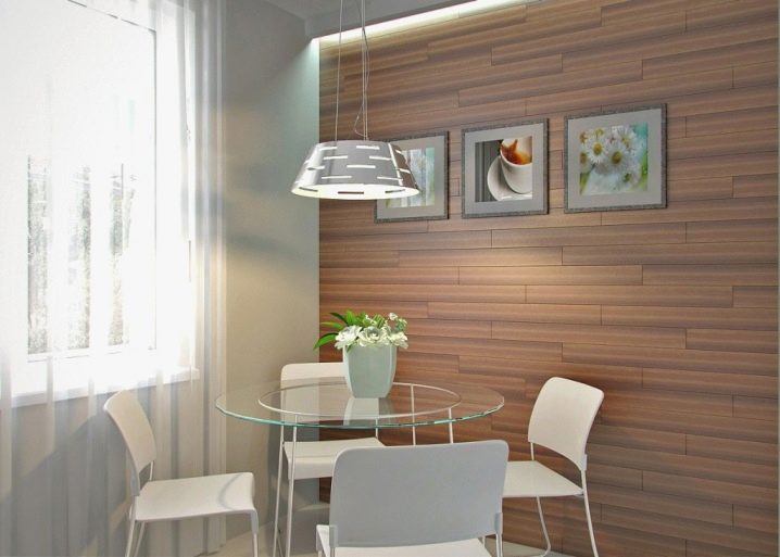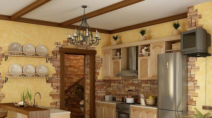Огромно разнообразие от текстури, цветове ви позволява да създадете интересно и необичайно пространство. Като се вземе предвид фактът, че кухнята е разделена на две основни зони – работна и трапезария, стените също се ремонтират. Повърхностите, които ще поемат основния товар, могат да бъдат направени от устойчиви материали и декоративни облицовки за трапезарията.
