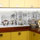 - Прозрачната престилка е изработена от стъкло. Тази опция създава усещане за комфорт и прави кухнята по -дискретна. Можете да нарисувате или залепите стикери върху повърхността на прозрачната престилка. Често под прозрачна престилка се монтира подсветка от LED лампи или панделки..