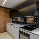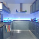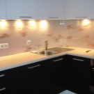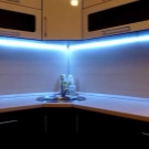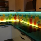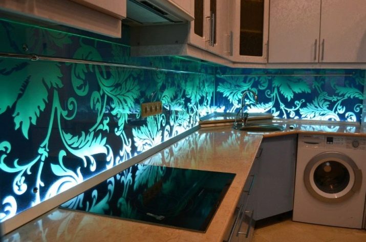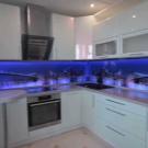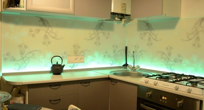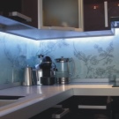 - Декоративен панел с LED осветление. Това е устойчив на топлина и безопасен материал. Панелът съдържа лампи, които се използват като допълнително осветление в кухнята..