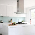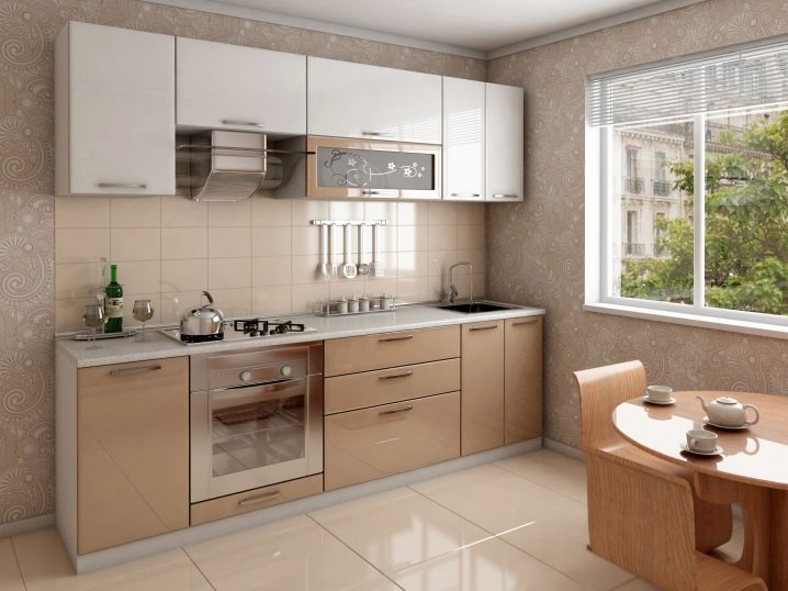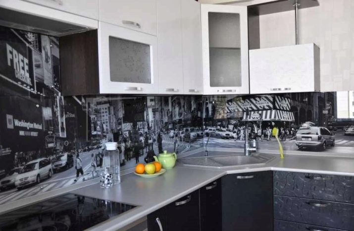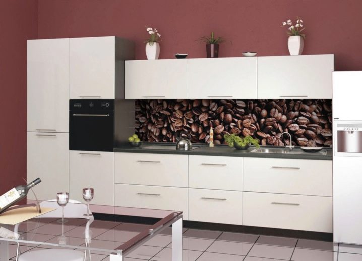 За да бъде холистичният дизайн на кухнята, трябва да изберете правилните цветове за стените и кухненските мебели. Идеалният вариант е бяла престилка, която изглежда хармонично във всяка стилистична посока на кухнята. По желание можете да залепите върху него красиви стикери, които лесно се отстраняват и не оставят следи от лепило по повърхността..