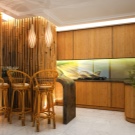 - Естествено дърво. Това може да бъде клен, дъб, елша, кедър или бамбук. Дървените панели изглеждат оригинални по стените на кухнята. Стенните панели Boiserie са подходящи за създаване на скъп интериор. А бамбуковите панели ще създадат ориенталски стил. За да не се развалят дървените панели от излишната влага, те се лакират..