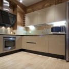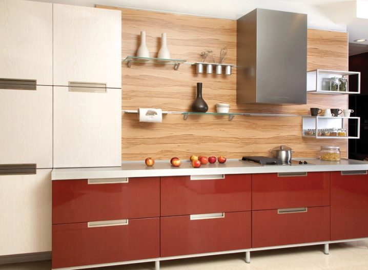 - Акрилна пластмаса AGT. Agt – пластмасата има равна повърхност, устойчива на влага, топлоустойчива. Основата на този материал е MDF. Заедно с акрилни панели, те купуват ABC ръб, който има гланцово покритие в цвета на дъската. Тези предни панели са покрити със защитно фолио, което помага да се избегнат драскотини и всякакви повреди..