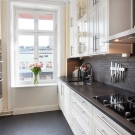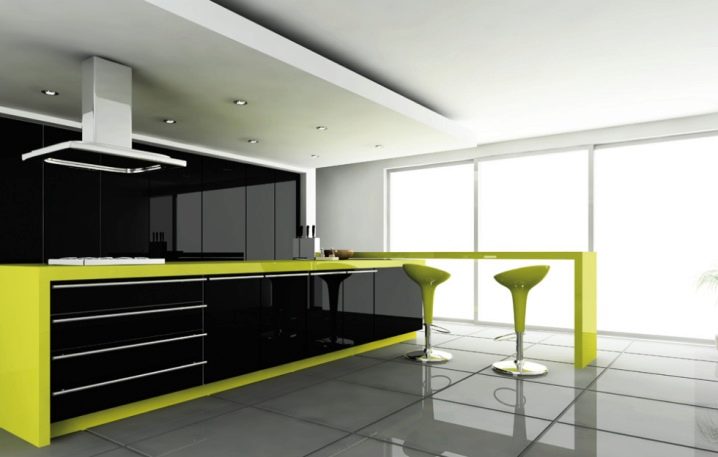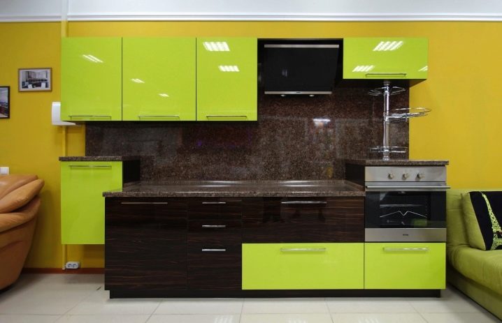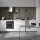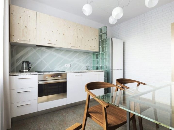 Интересно дизайнерско решение е играта на контрасти. Например, ако кухненският модул е бял, тогава скиналите могат да бъдат черни или червени. Изглежда много оригинално и добавя ярки цветове към пространството..