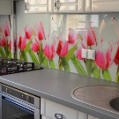 - Скинали с 3D рисуване. За вътрешна декорация на кухнята трябва да изберете 3D стъклени панели, т.к те са устойчиви на топлина и влага. Ако сте избрали тези панели, уверете се, че избраният модел ще изглежда хармонично в целия интериор на кухнята. Кухненският комплект трябва да бъде в плътни цветове, така че триизмерният модел на стената на работната зона да не се загуби. Стилът на кухнята трябва да бъде дискретен, така че 3D рисунката да изглежда грандиозно..